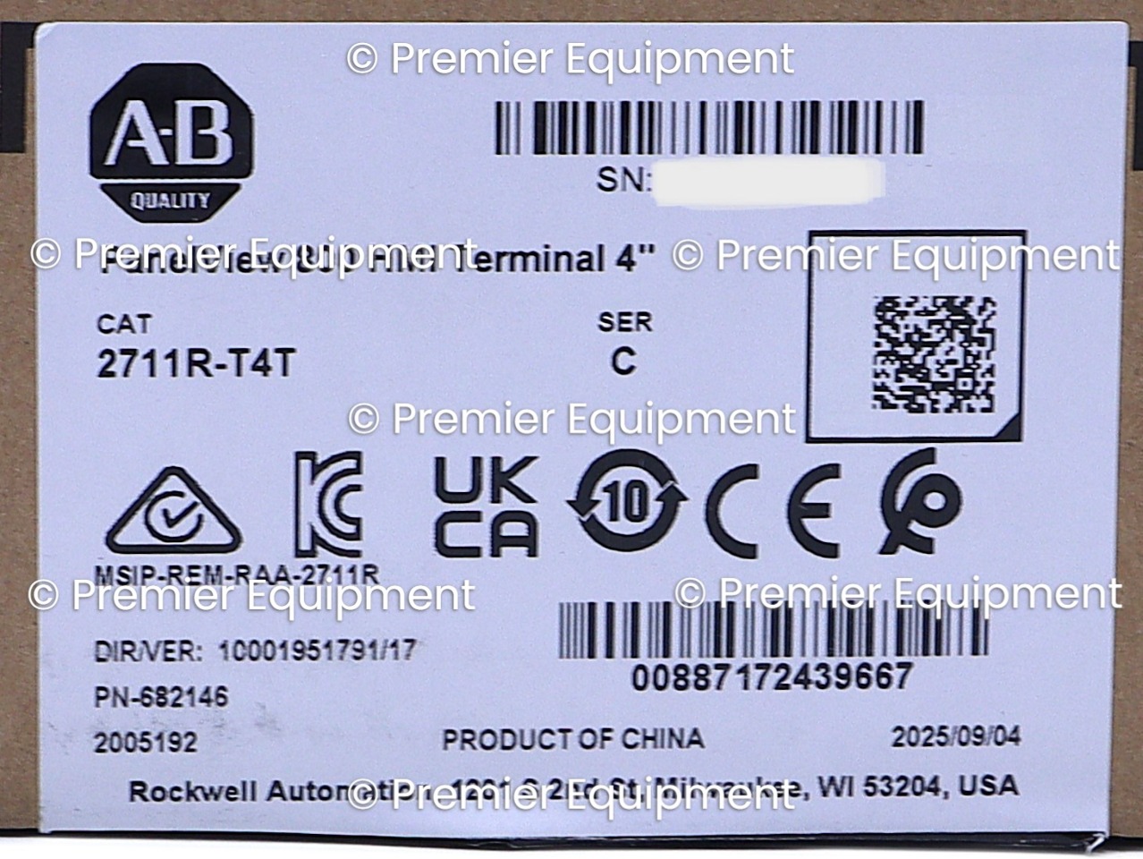 ALLEN BRADLEY 2711R-T4T SERIES CPANELVIEW 800 HMI TERMINAL4" TOUCH SCREEN 24VDCMfg. 2025NEW IN FACTORY OPENED BOX