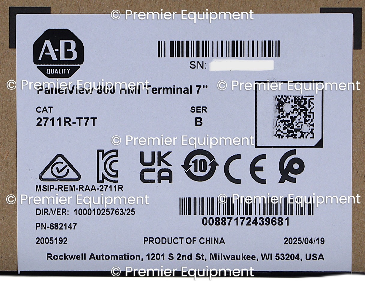 ALLEN BRADLEY 2711R-T7T /B PANELVIEW 800 HMI TERMINAL 7"