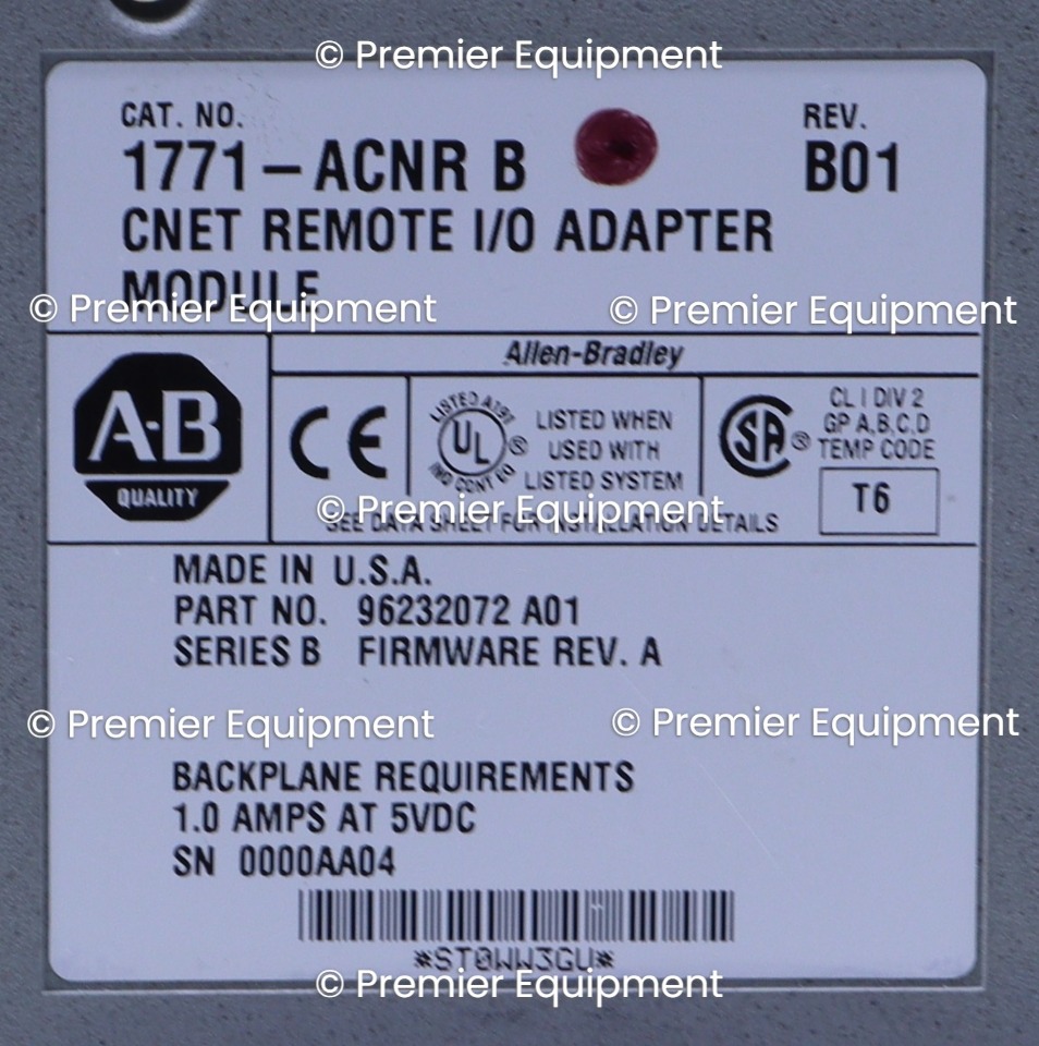 * ALLEN BRADLEY 1771-ACNR SER B CNET REMOTE I/O ADAPTER MODULE
